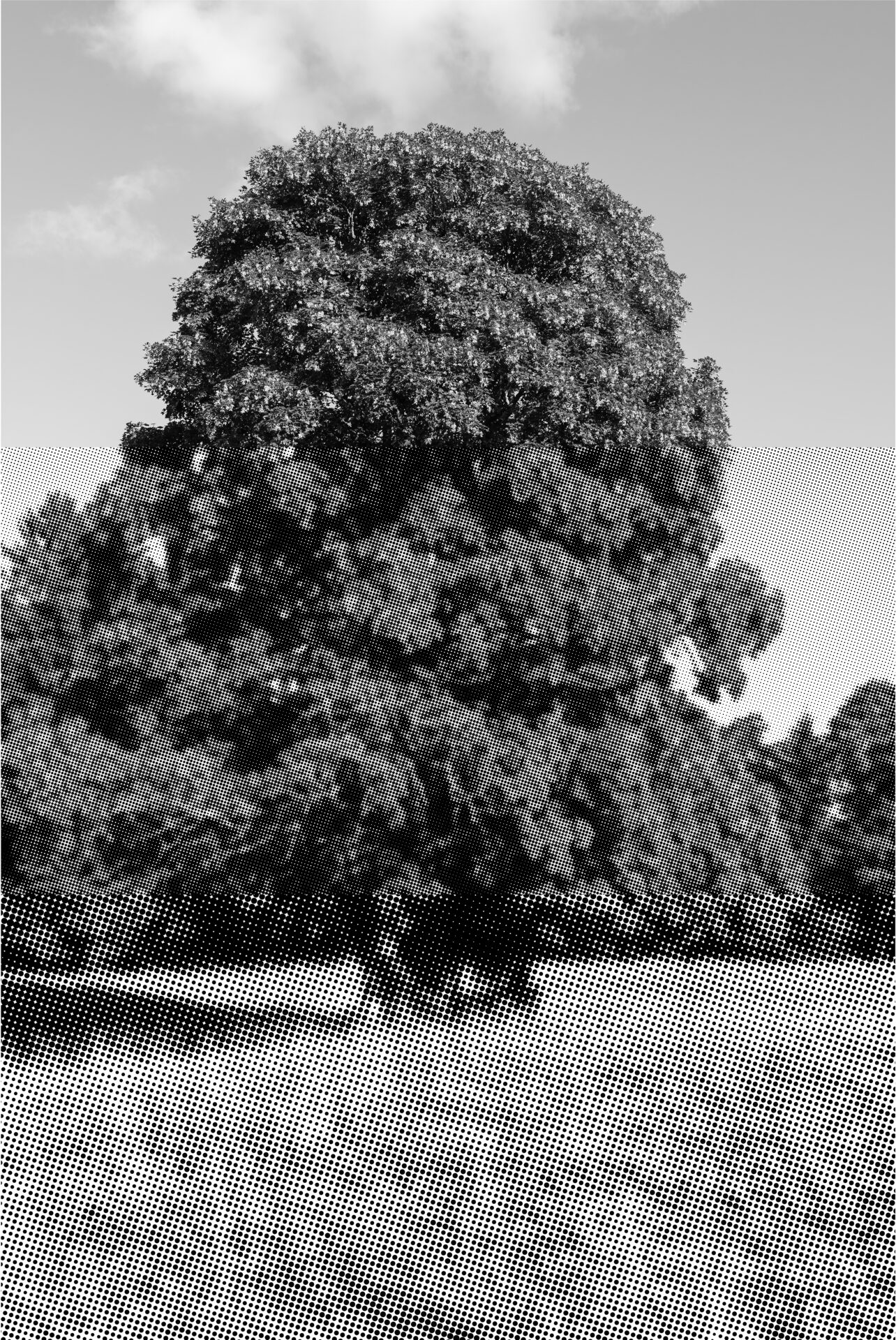 The work presents a black and white image of the tree standing just behind it in the landscape the.