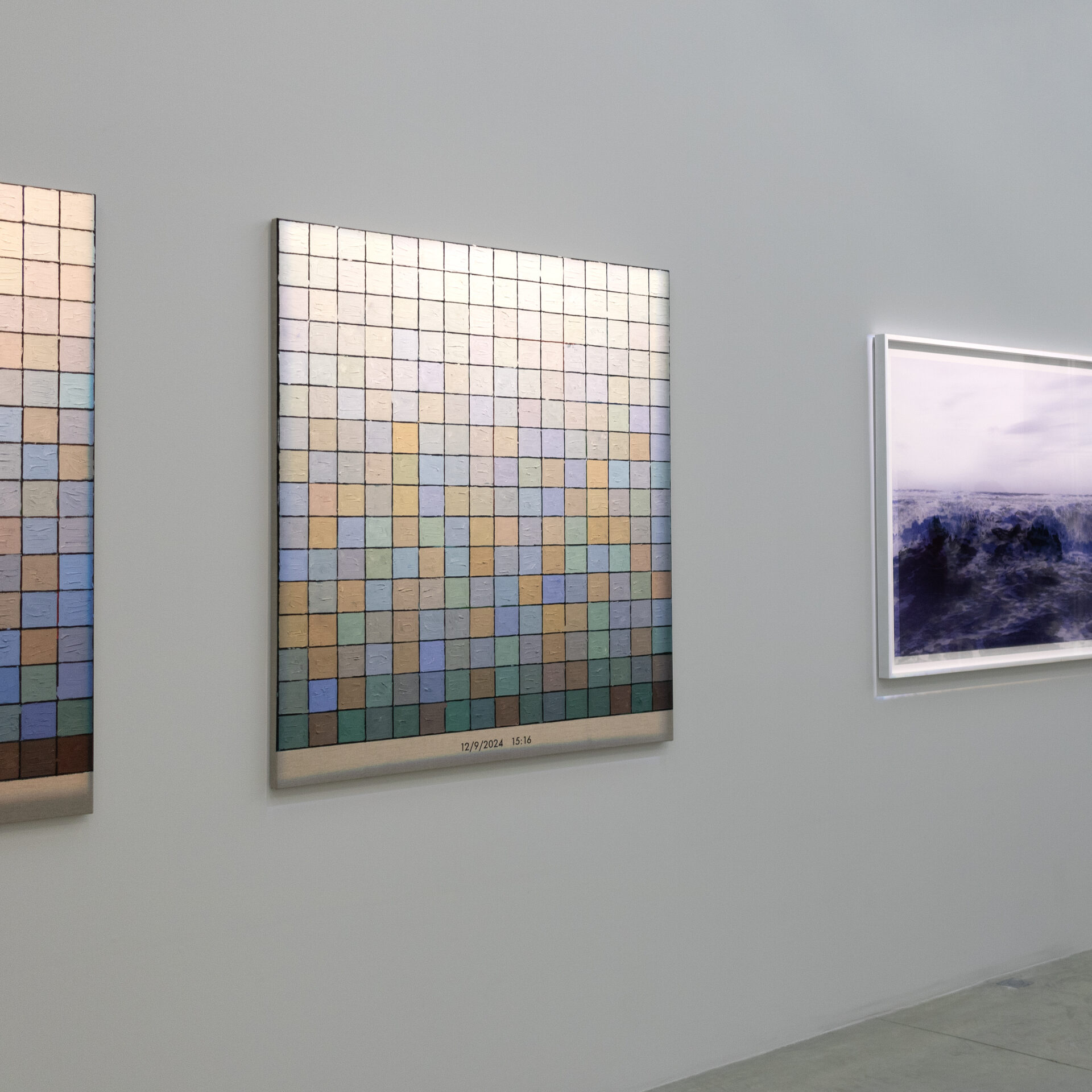 In my first solo exhibition at Hendrik Van De Weghe (re)D Gallery, I showed a series of drawings in which a glass plate was placed in front of the work each time, displaying 64 colors derived from the image. In between, I showed photographs from the series l’heure Bleue, camera obscura images that captured the light of 1 hour during a sunrise.