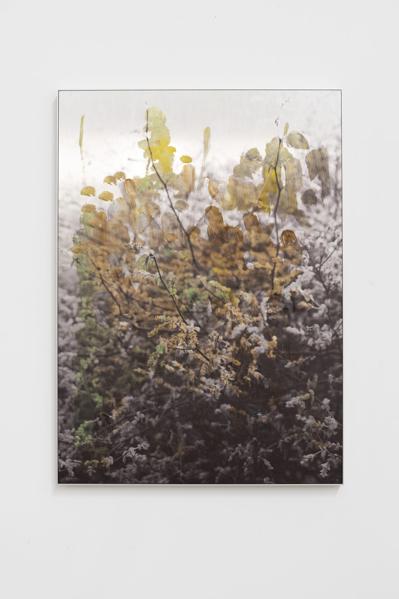 These sculptures consist of a bronze replica of a branch in spring, the flower/leaf buds visible. The casting channels have been preserved, these form an interpretation of the branch due to the nature of the subject, mirroring it. The branch was patinated and the channels kept untreated bronze.